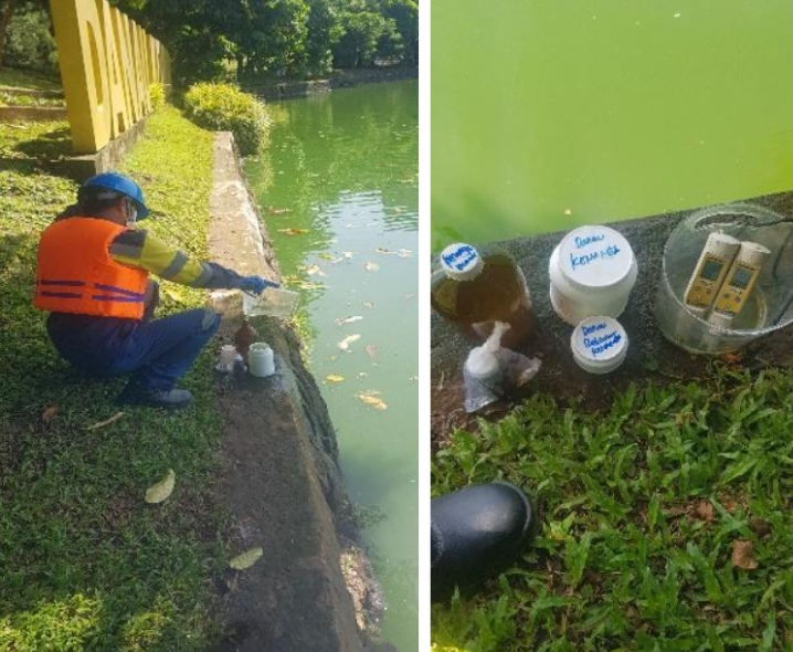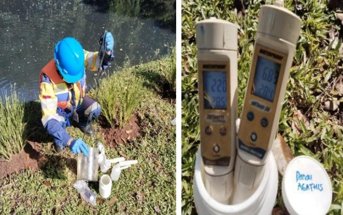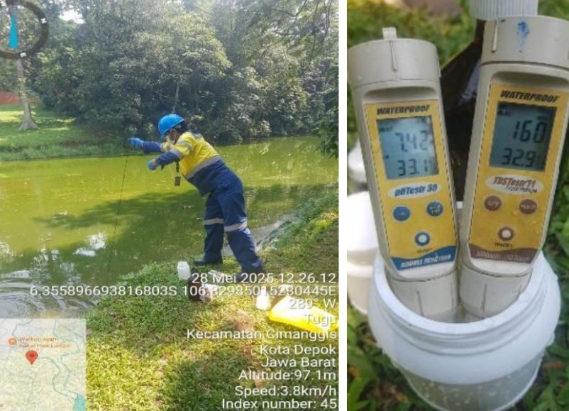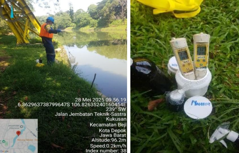 UI conducts a rigorous monitoring and evaluation program regarding water quality and the health of aquatic ecosystems on campus to ensure compliance with environmental standards. UI performs routine monitoring every six months (twice a year). This process is validated through a mandatory Environmental Evaluation Document and official permits from government environmental agencies. Water quality checks cover Physical, Chemical, and Biological parameters and are carried out by certified third-party laboratories (e.g., PT. Unilab Perdana in 2024).